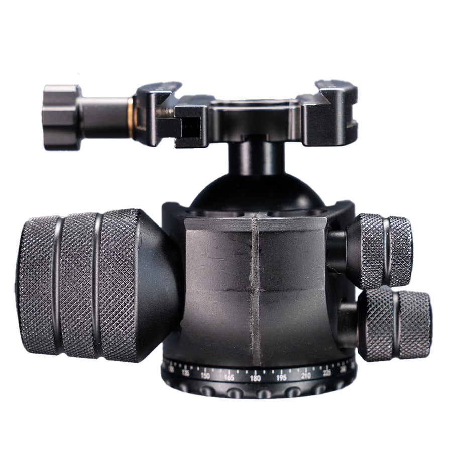 The 44mm dual-tension ball head has quickly gained popularity since its release. It features a dual adjustment system, including a large knob for coarse adjustments and a smaller knob for fine-tuning. This setup allows users to precisely tailor the ball head to their shooting needs and style. Additionally, it comes equipped with a standard Arca top secured by a twist knob for compatibility and ease of use.